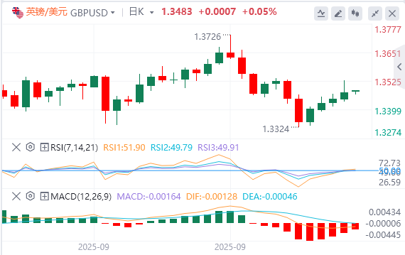 英镑/美元连续第四个交易日走强,短暂触及1.3500关口,然后在当天的市场交易中回落至0.27%的平稳涨幅。英镑交易员现在进入了交易周的后半段,美国政府关门威胁到高质量的官方劳动力和通胀数据的流动,而且英国方面明显缺乏有意义的经济数据发布。