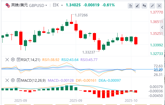 周二,英镑/美元汇率跌至1.3440附近。英镑/美元货币对难以回到20日指数移动平均线(EMA)上方,该平均线交投于1.3475附近。