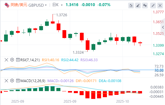 向下看,8月1日低点1.3140将成为关键支撑区域。上行方面,9月17日高点1.3726将成为关键障碍。