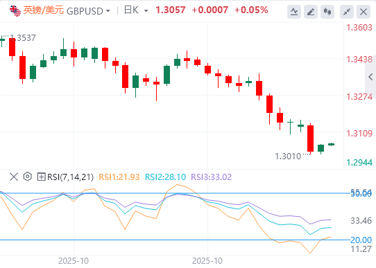 英镑进入周四的市场交易时段,在1.3050水平附近展开战斗。英镑/美元较10月中旬的上一个波动高点1.3470附近下跌了3%多一点,在过去连续13个交易日中,除了两个交易日外,其余交易日均下跌。