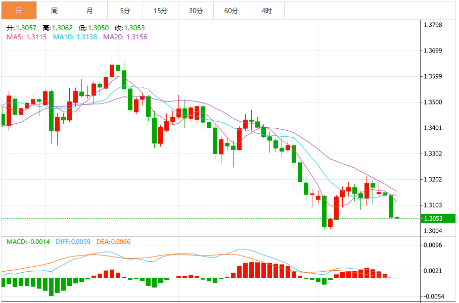 英镑/美元周三承受了一轮新的看跌压力,跌至1.3060区域,约下跌0.67%。 周三发布的英国消费者物价指数(CPI)通胀数据未能引发英镑(GBP)流动性的持续回升,反而使英镑/美元的买盘跌至多周低点,连续第四个交易日下跌。