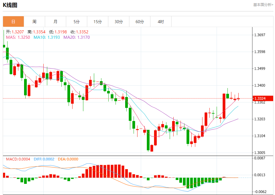 周二欧市盘中,英镑兑美元交投于1.3325,涨幅为0.02%。