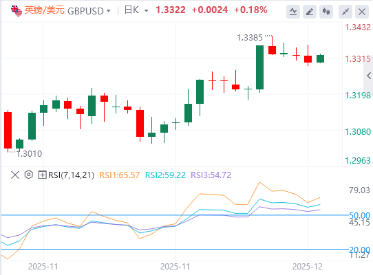 3、在英镑方面,英国秋季预算公布后整体税收水平上升的担忧,加上通胀疲软和劳动力市场降温,进一步增强了英格兰银行(BoE)政策进一步调整的前景。根据芝加哥商品交易所FedWatch工具,金融市场目前预计在即将到来的英国央行12月会议上,加息概率约为88%,即降息的四分之一点,此前经济数据显示通胀压力已缓解。