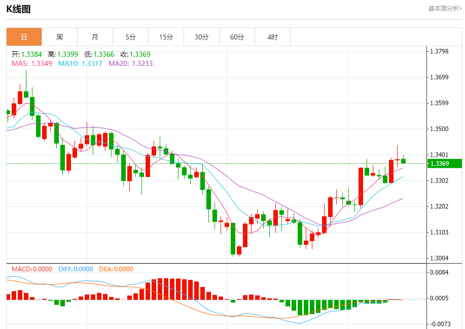 周五欧市盘中,英镑兑美元交投于1.3371,跌幅为0.11%。