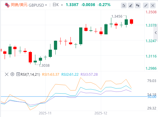 技术面上,截至撰写本文时,GBP/USD汇对的交易价约为1.3390。日线图分析显示持续多头,货币对保持在上升通道内,14天RSI仍高于50。该货币对可能会探索13周高点1.3536附近的阻力区。下行方面,直接支撑位于九日指数移动平均线(EMA)1.3662,紧接着是心理水平1.3300,与50日移动平均线1.3295对齐。