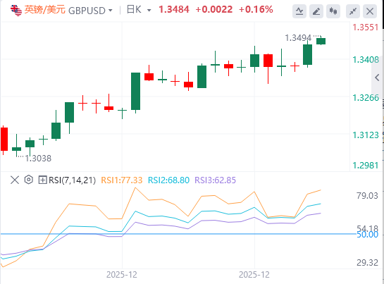 近期突破100日简单移动平均线(SMA)及随后突破9月至11月下跌时61.8%斐波那契回撤位(约1.3500整数)的强势,将被视为多头的新触发点。此外,日线图上的正向振荡指标验证了短期建设性展望,并表明英镑兑美元在英格兰银行鹰派倾向下,阻力最小的路径是向上。