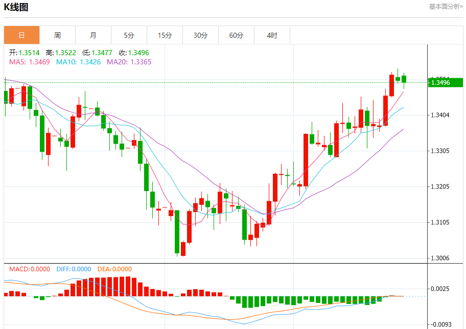 趋势结构:日线级别处于上涨后的震荡消化期,5日、10日均线多头排列未破,价格在1.3400—1.3550区间博弈,为趋势延续的中段整理,非转弱信号。