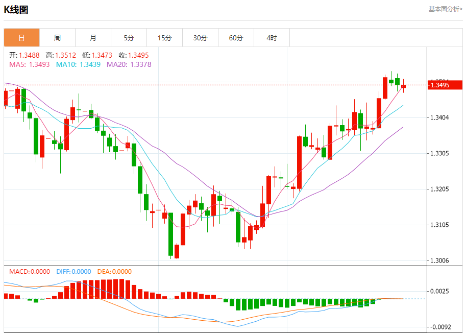 周一欧市盘中,英镑兑美元交投于1.3496,跌幅为0.01%。