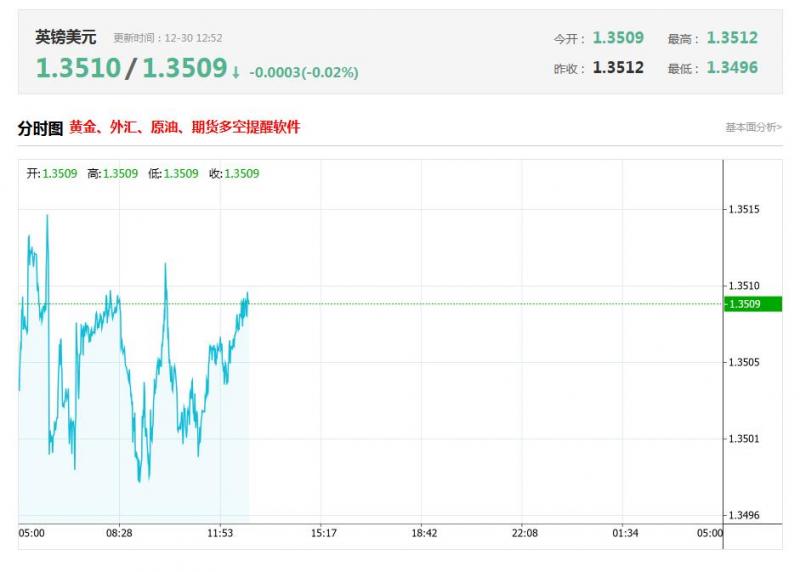 英镑兑美元今日汇率最高1.3510 ,最低1.3509 ,涨跌-0.0003 ,涨跌幅-0.02% 。