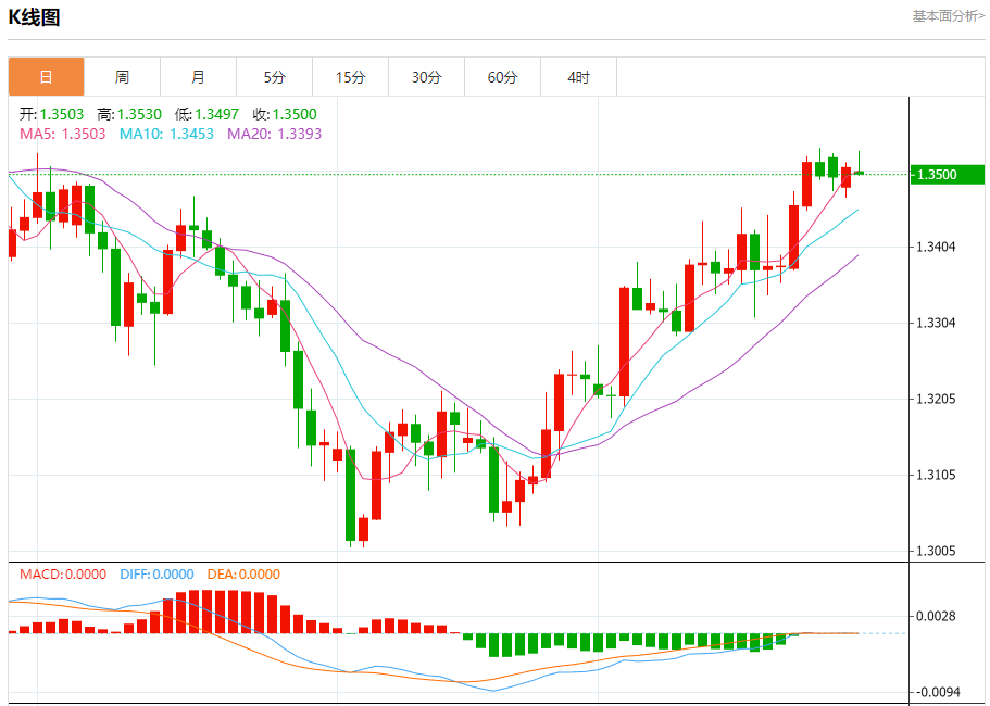 周二欧市盘中,英镑兑美元交投于1.3502,跌幅为0.08%。