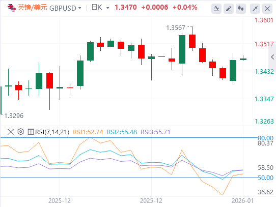英镑/美元持平在1.3463附近。20天指数移动平均线1.3442正在上升,价格将守在上方以维持短期上涨空间。