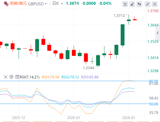 1月27日,英镑/美元将涨势推至约1.3685,为自2025年9月17日欧洲早盘以来的最高点。英镑/美元的汇率因英国零售销售和采购经理人指数(PMI)数据强于预期而略高。这些乐观的报告使一些分析师预测英格兰银行(BoE)进一步降息可能被推迟。