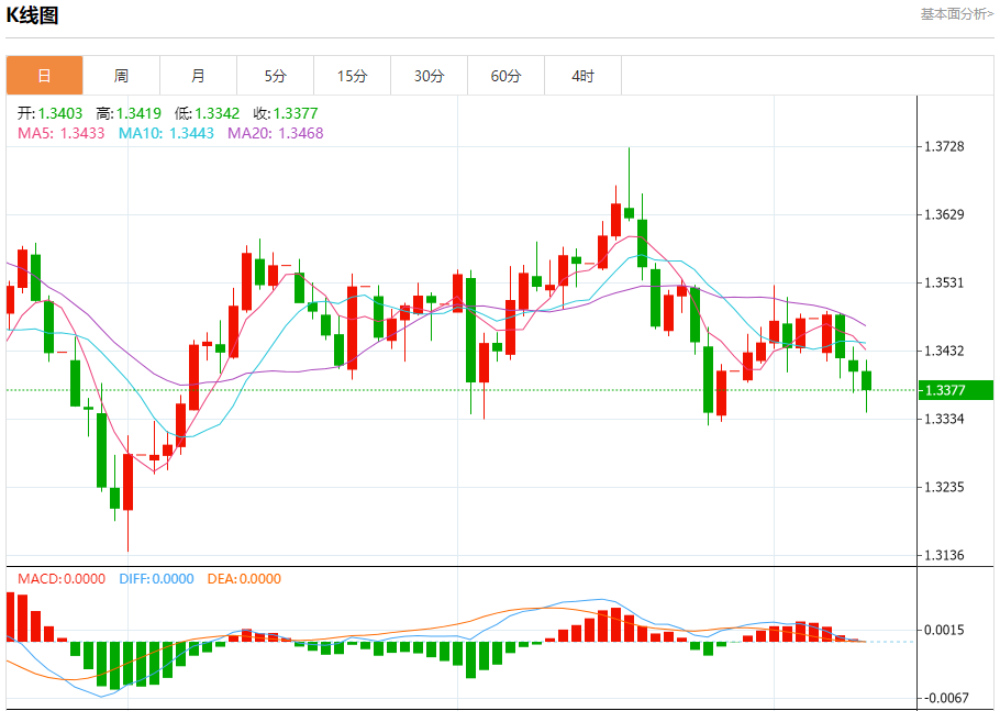 英镑兑美元今日汇率最高1.3397,最低1.3396,涨跌-0.0027,涨跌幅-0.20%。 市场基本面分析 因英国就业市场疲软与市场押注英国央行(Bo)将在年底前再度降息。与此同时,美国政府停摆持续、市场等待FOC会议纪要与Bo官员讲话,使得英镑走势承压但仍存在反弹可能。日线图显示,该货币对在关键支撑位1.3330