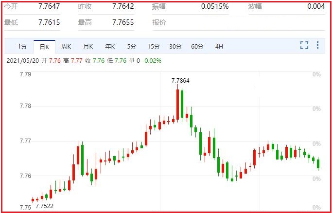 1.日线图上,美元对港元汇率收阴线,收盘价受MA5压制,短期看跌。