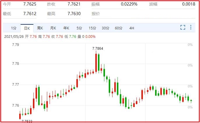 1.日线图上,美元对港元汇率收阴线,收盘价受MA100支撑,短期看平。