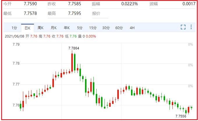 1.日线图上,美元对港元汇率收阳星,收盘价受MA5支撑,短期看平。