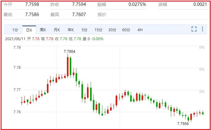1.日线图上,美元对港元汇率收阴线,收盘价受MA5压制,短期看跌。