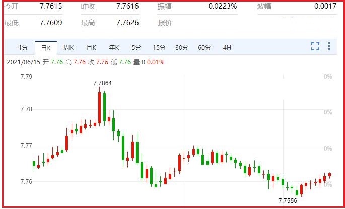 1.日线图上,美元对港元汇率收阳线,收盘价受MA5支撑,短期看涨。