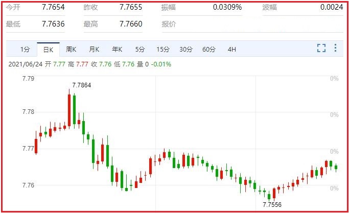 1.日线图上,美元对港元汇率收阴线,收盘价受MA5压制,短期看跌。