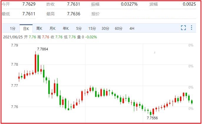 1.日线图上,美元对港元汇率收阴线,收盘价受MA10压制,短期看跌。