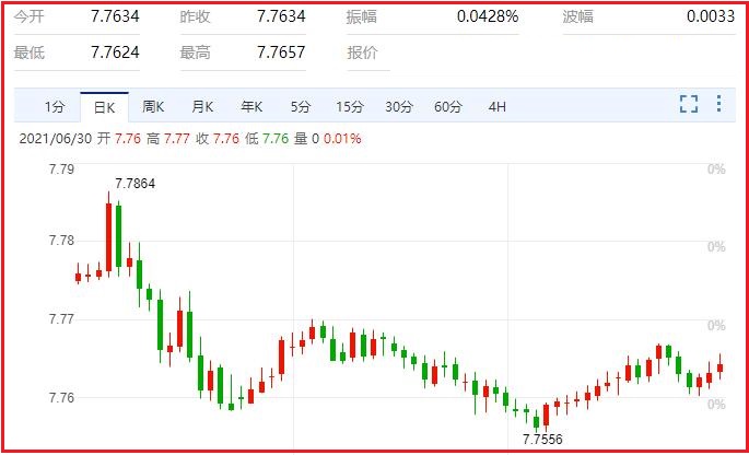 1.日线图上,美元对港元汇率收阳线,收盘价受MA5支撑,短期看涨。