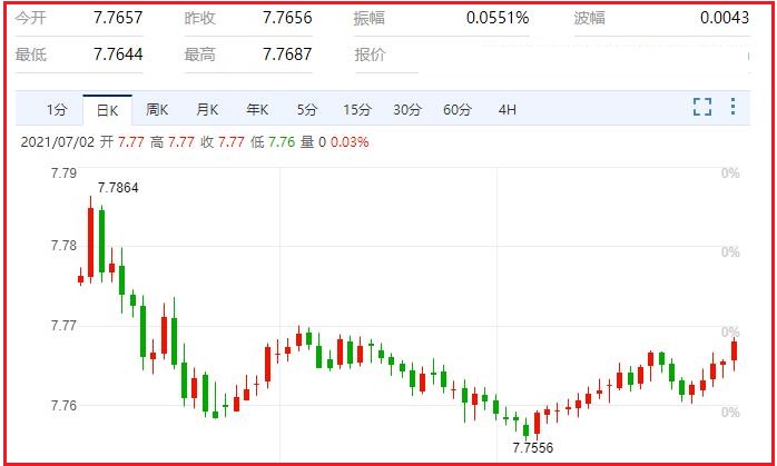 1.日线图上,美元对港元汇率收阳线,收盘价受MA5支撑,短期看涨。