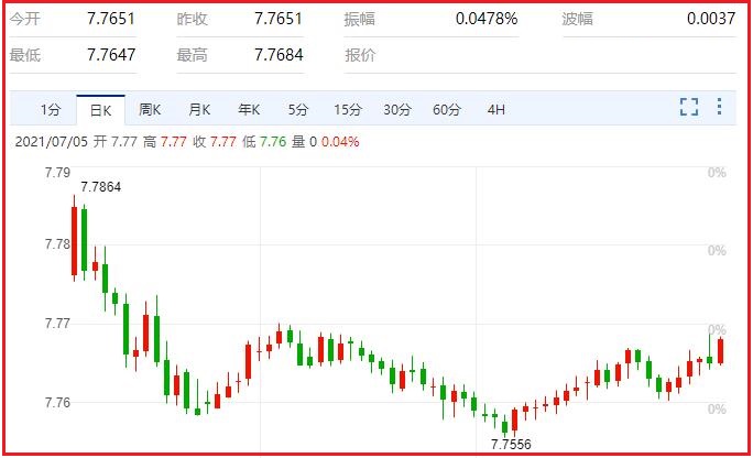 美元对港元汇率: