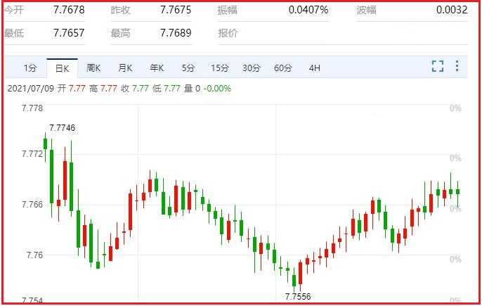 1.日线图上,美元对港元汇率收阴线,收盘价受MA5压制,短期看跌。