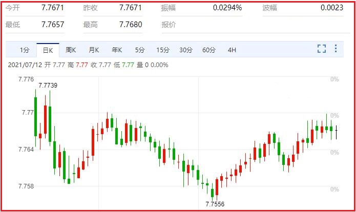 1.日线图上,美元对港元汇率收阴线,收盘价受MA5压制,短期看跌。