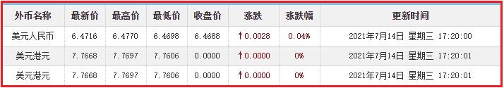 最新的港币汇率以及港币对人民币汇率2021-07-15 港币对人民币汇率今日最新价格:82.99 港币兑换人民币汇率今日现汇买入价:82.33 港币兑换人民币汇率今日现汇卖出价:83.32 港币兑换人民币汇率今日现钞买入价:83.32 港币兑换人民币汇率今日现钞卖出价:83.22 也就是
