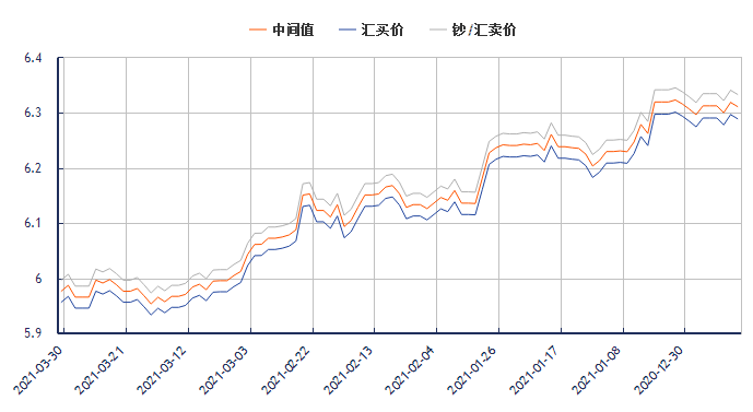 提供今日日元兑换人民币汇率最新中间价(2021年3月30日):