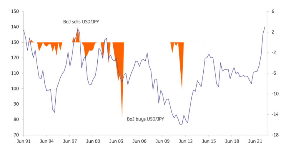 最后两点--我认为如果美国股市下跌到足以让美联储的紧缩周期被大幅重新定价(今年我们还没有看到太多这样的情况),日元将再次跑赢大盘,美元/日元将下跌。我还怀疑美元/日元正在进入一个日本政策制定者会表现出更多公开担忧的区域--他们曾在上世纪90年代末干预将美元/日元卖回目前的水平。