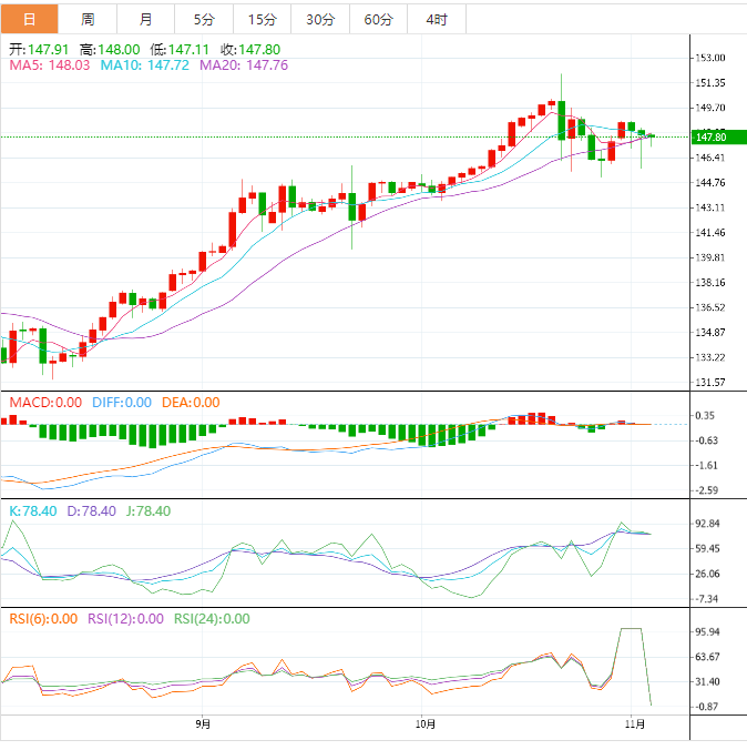 基本面上,美元兑日元仍录得三连跌,汇价最新跌势可能与美元未能维持美联储利率决议后涨势有关。此外朝鲜向日本、韩国试射导弹引发的担忧也给带货币对带来下行压力。展望未来,日本市场休市可能限制美元兑日元反弹机率,而收益率疲软给该货币对带来下行压力,交易员等待美国ISM服务业指数,预计10月数据回落至55.5,前值56.7。之后周五发布的非农报告将是关键,主要是因为ADP就业数据强劲。