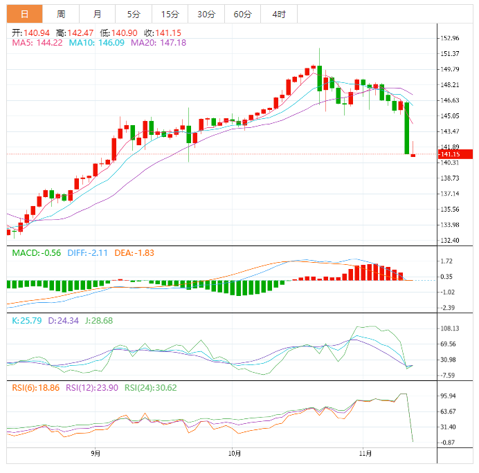 技术面上,美元兑日元继续强劲下跌,突破141.83水平,并接近扩大的负面目标位置139.45,尽管突破了第一个水平,但将依靠跌破该水平的日收盘价继续暗示未来一段时间的看跌趋势,等待测试139.45作为下一个主要目标。