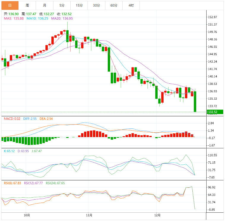 技术面上,受日本央行声明和利率决定的影响,美元兑日元今天开盘大幅下跌,突破了等待的目标134.25,并攻击了最近的低点133.62,在盘中和短期基础上打开了继续下跌的道路,建议瞄准132.00,然后131.20区域作为下一个负面位置。