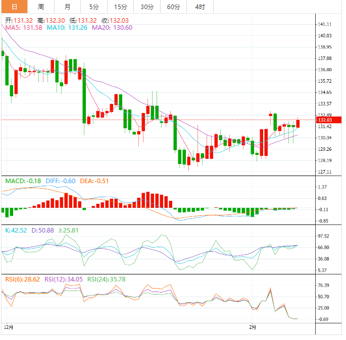 EMA50为价格提供了积极的支撑,加强了持续看涨趋势的预期,并指出,在131.65上方盘整增加了对积极情景的更多支持。