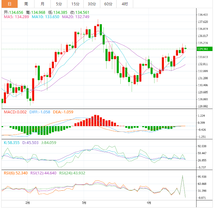 技术面上,美元兑日元恢复积极交易,接近我们等待的目标位135.25,面临随机负面影响的暂时负面压力,而EMA50继续为价格提供积极支撑,保持继续主要看涨趋势的机会,其目标延伸到137.00,然后是137.70区域。