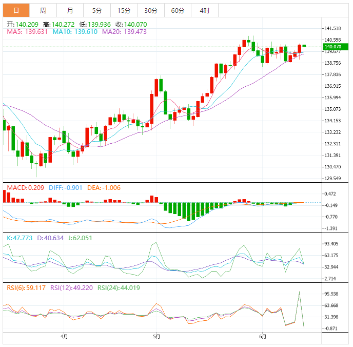 基本面上,美元兑日元于欧市早盘在关键支撑位140.00温和反弹。汇价大部分时间盘整,投资者等待在北美时段尾盘公佈的美联储利率决议。美国总体通胀率月率增长0.1%,预期0.2%,前值0.4%。此外总体通胀率年率下降至4.0%,市场预期从4.9%下降至4.1%。汽油价格下跌的影响在总体通胀率中明显。