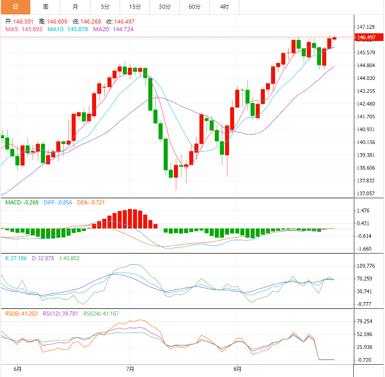 技术面上,美元兑日元成功触及了等待的目标146.55,并试图突破它,以支持继续上涨的机会,并实现从147.00开始延伸到147.90的额外积极目标。