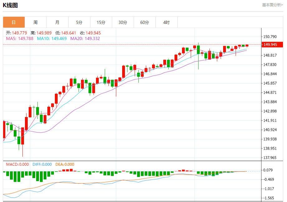 周五纽盘,美元兑日元交投于149.953,涨幅为0.11%。