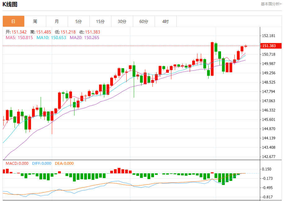 ÖÜÎåŦÅÌ£¬ÃÀÔª¶ÒÈÕÔª½»Í¶ÓÚ151.403£¬ÕÇ·ùΪ0.03%¡£
