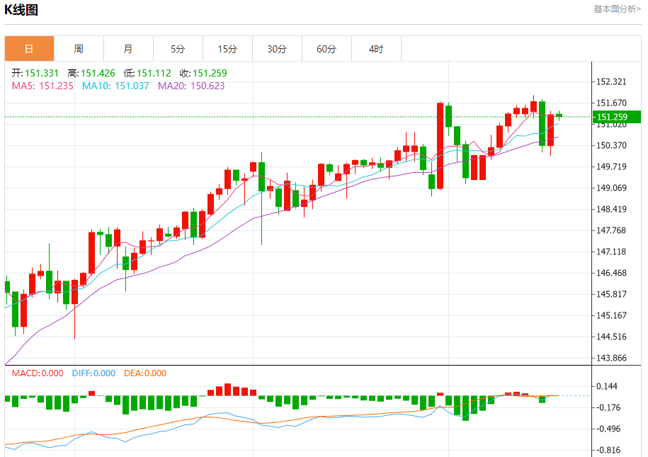 今日周四,截止目前美元兑日元报151.267,下跌0.04%。