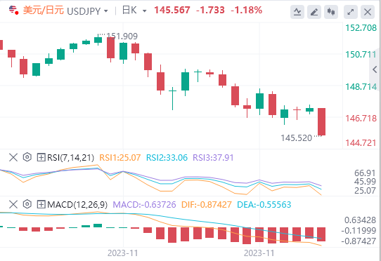 相比之下,随着通胀压力的缓解和历史上紧张的劳动力市场正在放松的迹象,预计美联储最早将于2024年3月开始降息。这反过来又引发了美元从周三触及的两周高点的回调,尽管美国国债收益率出现了不错的反弹。与此同时,较温和的风险基调被视为另一个有利于日元相对避险地位的因素。这反过来又将美元/日元对拉向145.00心理关口,并支持进一步贬值的前景。交易员们现在期待着美国每周首次失业申请数据的发布,以在北美交易日晚些时候获得一些动力。