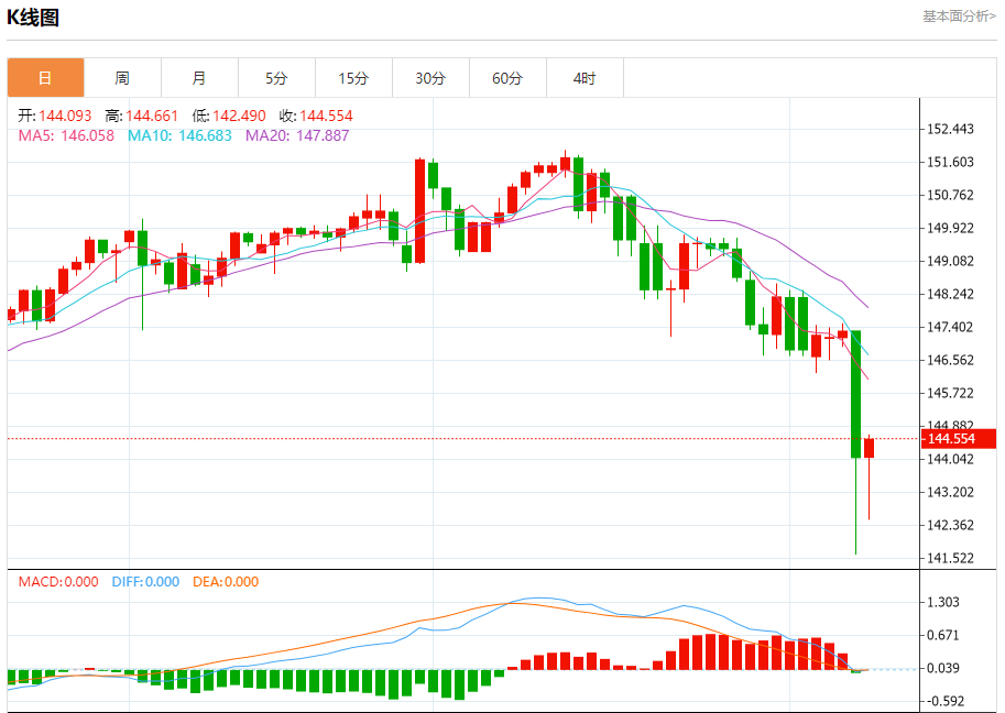 今日周五,截止目前美元兑日元报144.565,上涨0.32%。