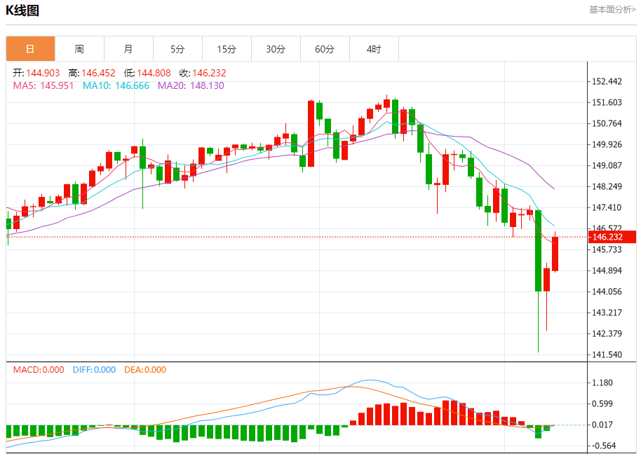 今日周一,截止目前美元兑日元报146.244,上涨0.86%。