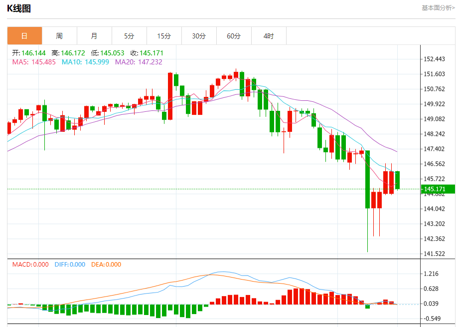 今天的预期交易区间在144.70支撑和146.20阻力之间