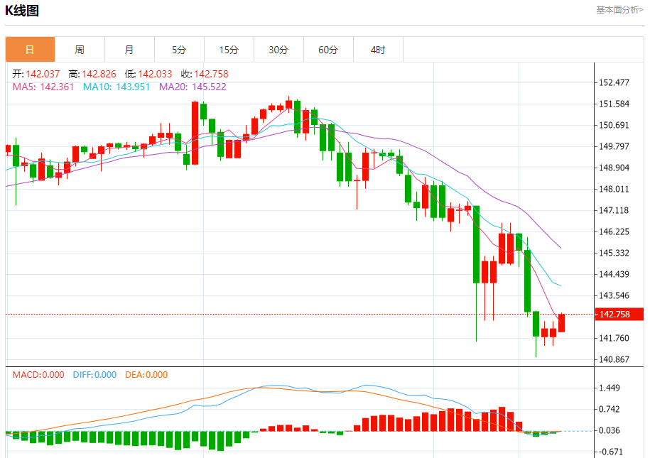 今日周一,截止目前美元兑日元报142.768,上涨0.42%。
