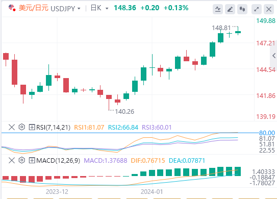 今天的预期交易区间在147.50支撑位和149.10阻力位之间。
