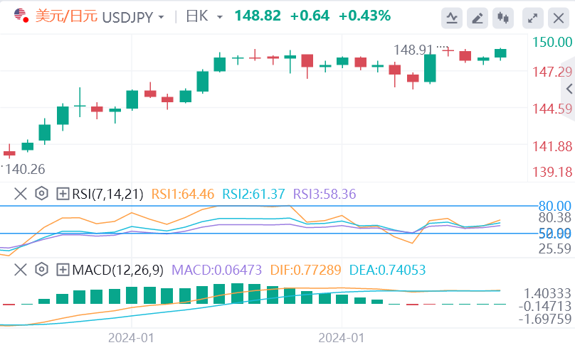 从技术角度看,持续走强并突破148.80供应区将成为看涨交易者的新触发点。鉴于日线图上的震荡指标维持在积极区域,且仍未进入超买区域,美元兑日元可能会突破149.00大关,并有望测试149.55-149.60关口。这种势头可能会进一步扩大,自2023年11月以来首次夺回150.00心理关口。