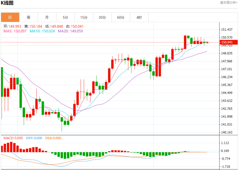 今日周三,截止目前美元兑日元报150.061,上涨0.03%。
